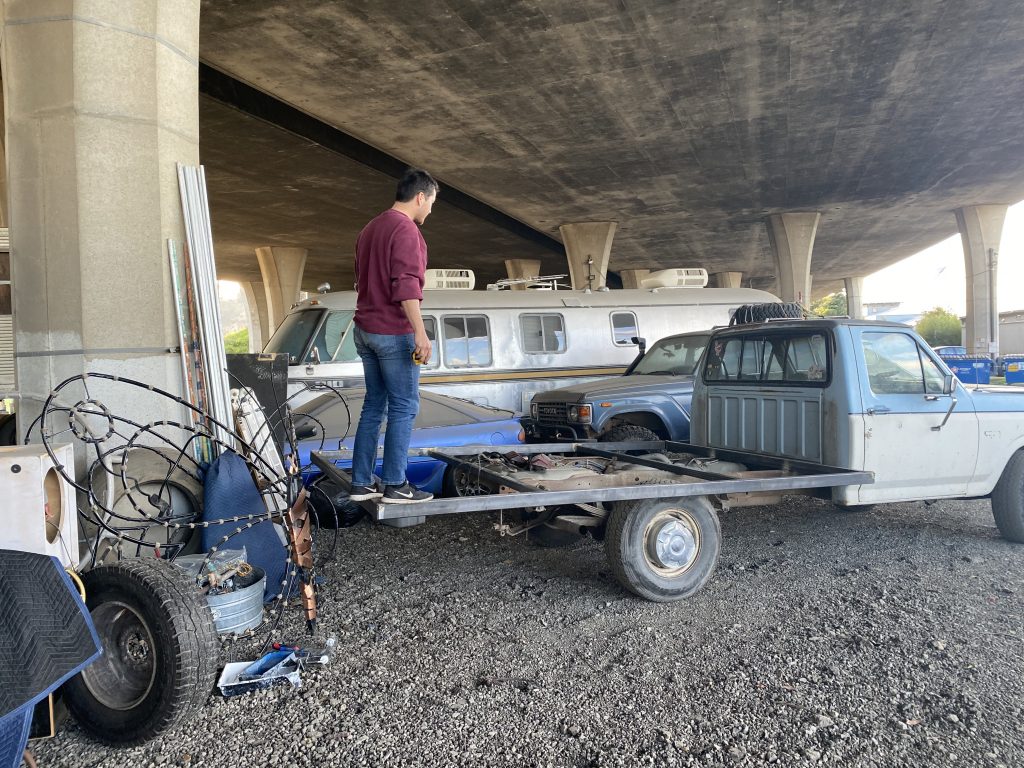 He cut some of the larger parts and then took off to work on his own art. (Can’t wait to climb all over it!)